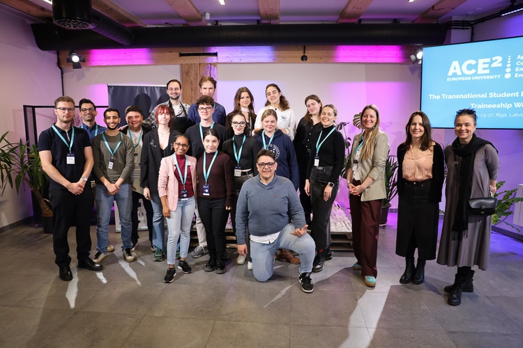 From 23 to 27 March, the Latvian Academy of Culture (LAC), together with two partner universities from the European University Alliance ACE²-EU – the Medical University of Gdańsk and the Technische Hochschule Ingolstadt – hosted an international entrepreneurship traineeship programme. Over the course of one week, students from nine universities across Europe engaged with themes of entrepreneurship and innovation. This marked a new and distinctive format of collaboration – a practice-oriented, joint study programme delivered simultaneously across three institutions.