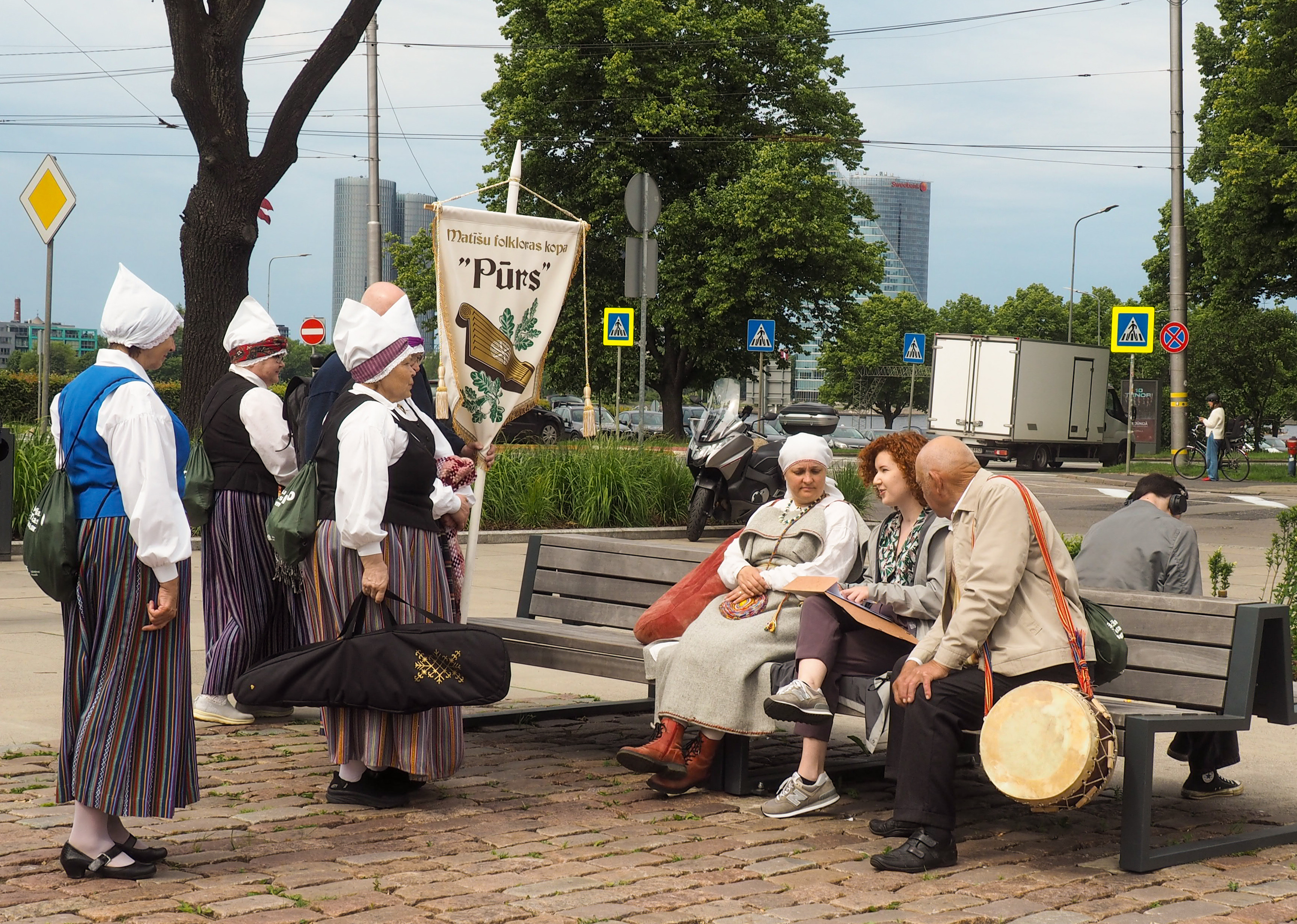 Fieldwork was carried out during the event Honouring and Meeting of the Regions at Viesturdārzs, and the Vērmane Garden Festival at Vērmanes Dārzs, which featured performances by diaspora folk ensembles from Latvian cultural centres abroad. Observation also took place during the public screening of the Sacred Concert choir performance at Doma laukums, where citizens were able to sit on benches and follow the concert without being present at the main venue. In addition, the IACS research team attended the Folklore Group Programme: Dindaru, Dandaru, Creating Regional Patterns at the Open-Air Ethnographic Museum of Riga, as well as a rehearsal concert at Mežaparks.