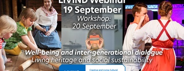 Aicinām piedalīties LIVIND vebinārā “Dzīvais mantojums un sociālā ilgtspēja – labklājība un paaudžu sadarbība” 2022. gada 19. septembrī plkst. 13:30 – 16:00! Lai nemateriālo kultūras mantojumu varētu saglabāt no paaudzes paaudzē, svarīgi ir tas, ka cilvēkiem ir iespēja piedalīties šī dzīvā mantojuma norisēs. Tas, savukārt, palīdz stiprināt saikni starp dažādām paaudzēm un veicina sociālo saliedētību. Piemēram, tradicionālās dejas vai stāstniecība cilvēkiem ļauj satikties un sarunāties, kas veicina gan viņu fizisko, gan garīgo veselību. Kā vairāk popularizēt dzīvā mantojuma pozitīvo ietekmi uz sabiedrību un tās veselību? Kā veicināt to, ka dzīvā mantojuma norisēs var iesaistīties pēc iespējas vairāk interesentu? Kā dzīvais mantojums var veicināt savstarpējo dialogu un mieru? Kādas iespējas sniedz digitalizācija dzīvā mantojuma saglabāšanai un stiprāku saišu veidošanai kopienā un ārpus tās?