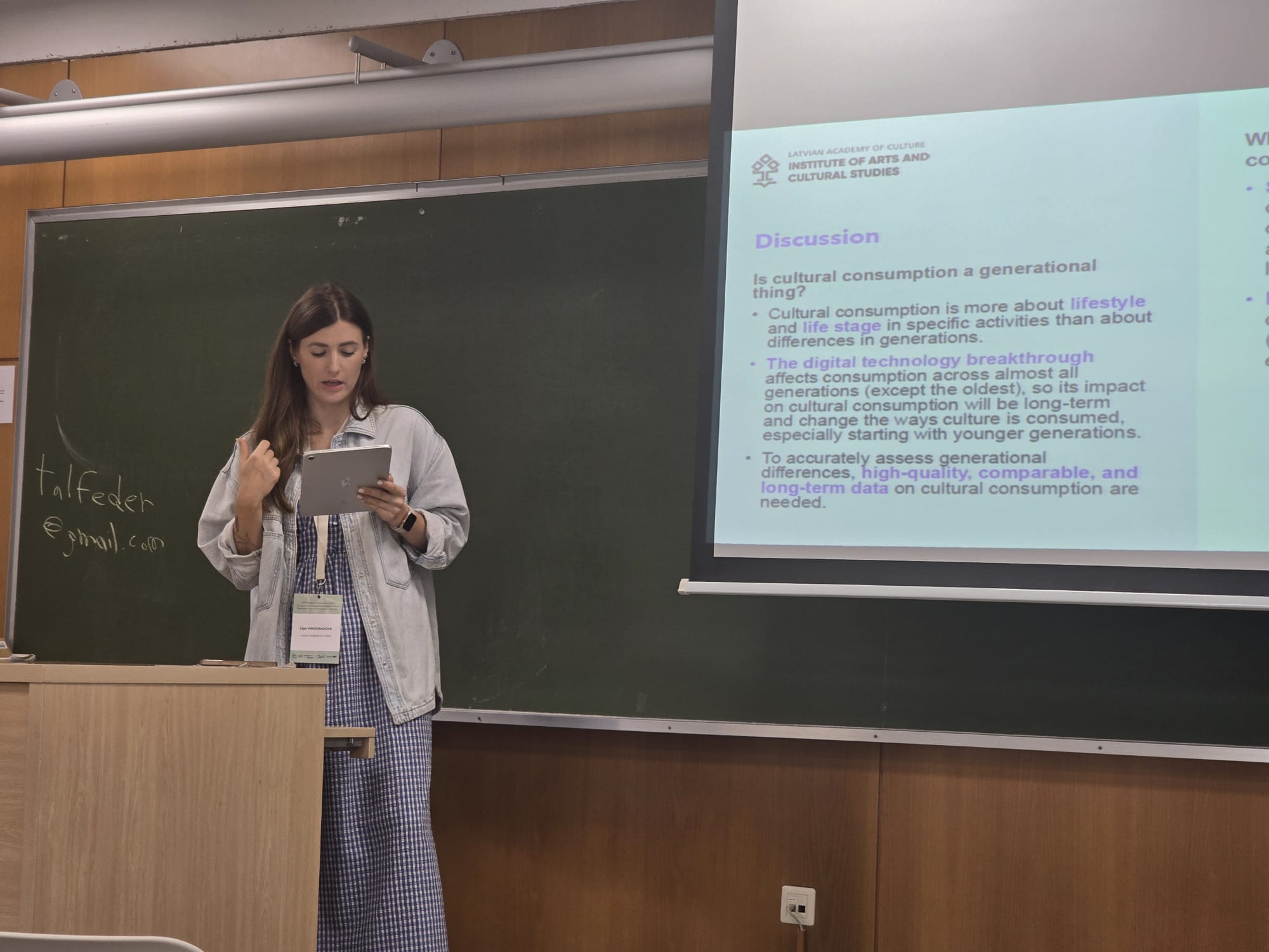No 8.-9. septembrim Barselonā (Spānija) norisinājās 13. Eiropas Sociologu asociācijas Mākslas socioloģijas tīkla starpkonference, kurā Līga Vinogradova piedalījās ar referātu “Cultural Participation Trends Across Generations: A Roadmap for Latvian Policy Makers”. Tajā tika apskatīti visi esošie kultūras patēriņa pētījuma dati Latvijā un kā tie atšķiras dažādās paaudzēs. Diskusija pēc referāta veicināja pētnieces izpratni par labākajām metodēm, kuras vēlams izmantot paaudžu patēriņa salīdzināšanai.
