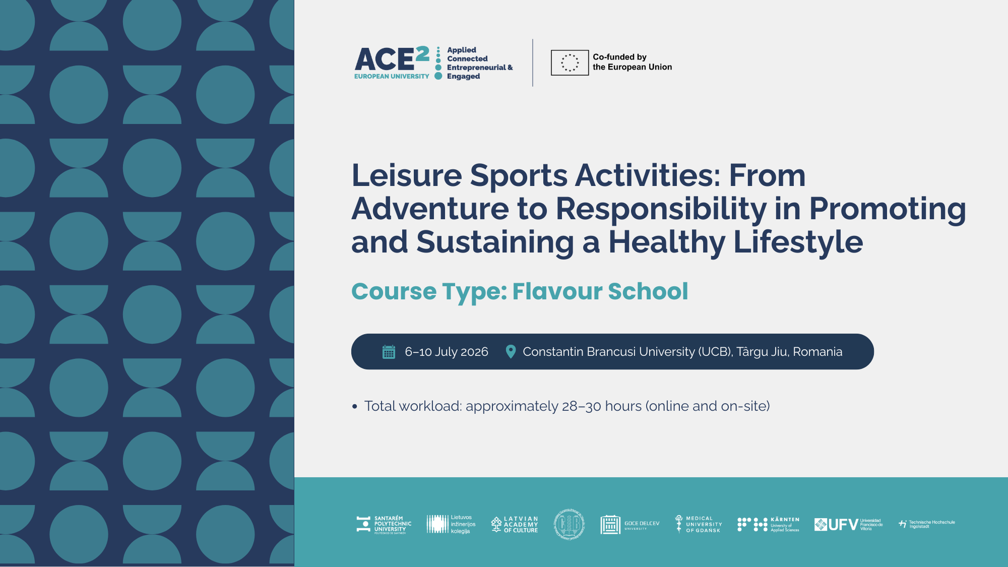Apraksts: Programma pievērsīsies aktīva, veselīga un atbildīga dzīvesveida veicināšanai, apvienojot brīvdabas sporta aktivitātes, drošības apmācības un refleksiju par personisko labbūtību. Intensīvā klātienes programmas laikā studenti piedalīsies praktiskās darbnīcās un pieredzē balstītās aktivitātēs, kas palīdzēs attīstīt fizisko noturību, komandas darba prasmes un izpratni par drošu rīcību brīvdabas un rekreācijas aktivitātēs.