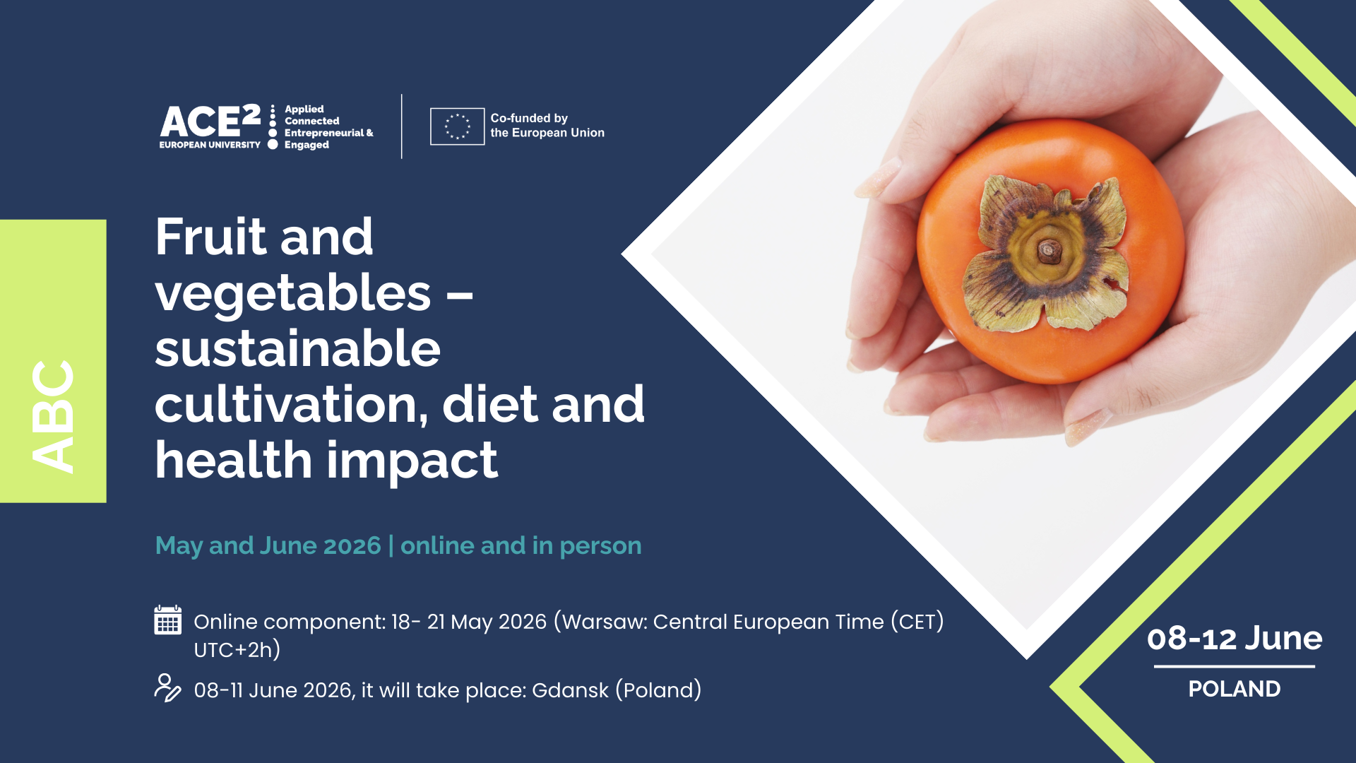 Apraksts: Programmas mērķis ir izpētīt augļu un dārzeņu ceļu no audzēšanas līdz patēriņam, analizējot to nozīmi veselīgā uzturā, sabiedrības veselībā un vides ilgtspējā. ABC programmas ietvaros studenti apgūs ilgtspējīgas lauksaimniecības prakses, pārtikas drošības un piesārņojuma riskus, kā arī “One Health” pieeju, kas sasaista cilvēku veselību, vidi un pārtikas sistēmas. Programma apvieno teorētiskas zināšanas ar praktiskām lauka un laboratorijas aktivitātēm, sadarbojoties ar vietējiem lauksaimniekiem, veselības speciālistiem un pārtikas nozares pārstāvjiem.