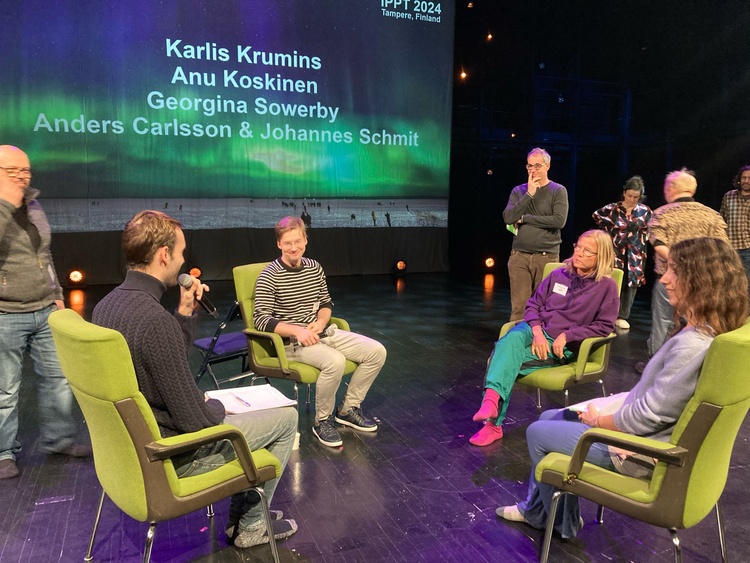 The IPPT seminar gathered around 40 acting educators, theater researchers and professional doctoral students from the USA, Austria, Greece, Estonia, India, Italy, Colombia, Latvia, Great Britain, Poland, Finland, Switzerland, Germany, Sweden, and other countries, talking about their inquiries, findings, and doubts in theater pedagogy, and inviting the other participants to join the practical exercises.