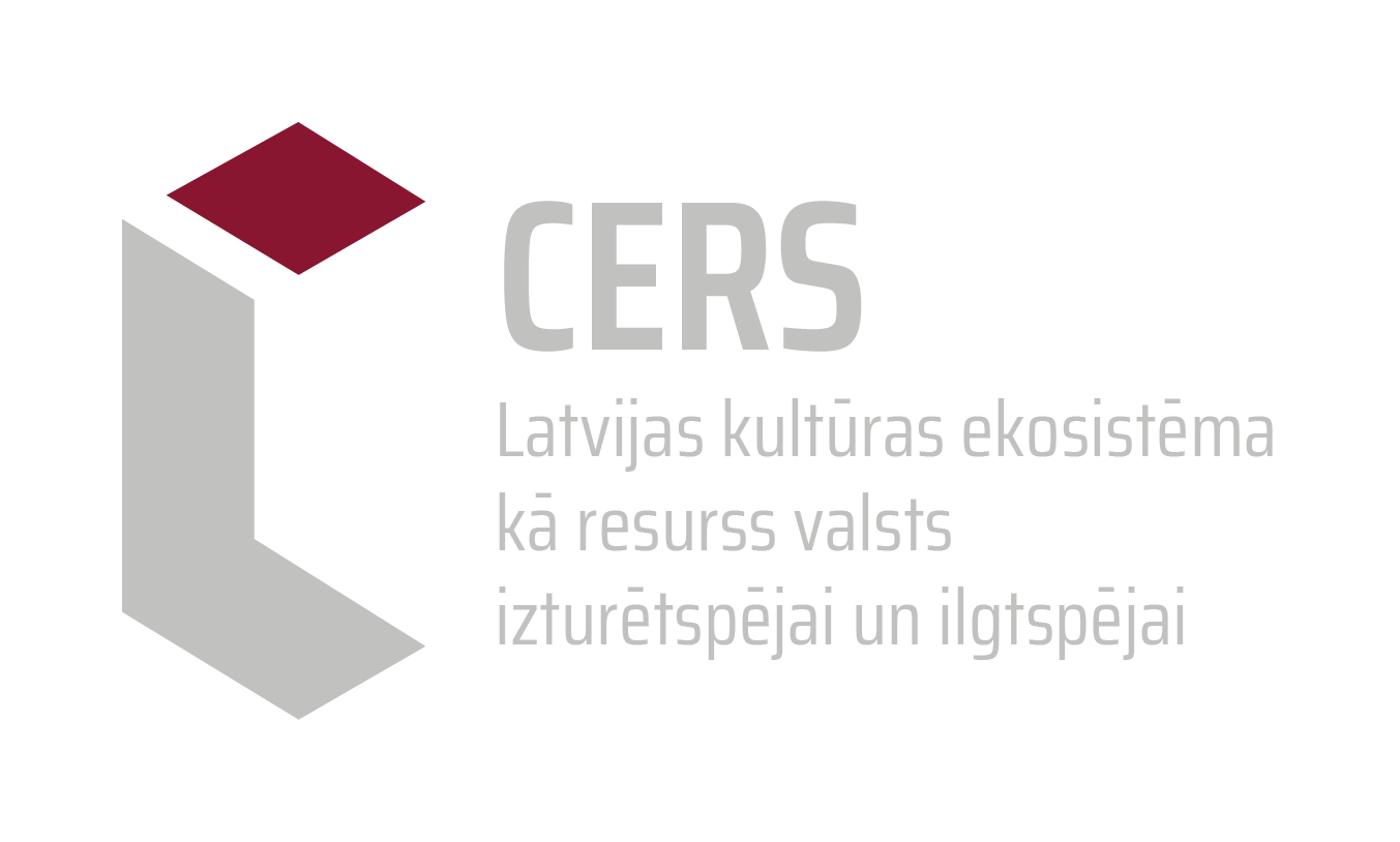 Project “Cultural and creative ecosystem of Latvia as a resource of resilience and sustainability” / CERS (No. VPP-MM-LKRVA-2023/1-0001) is funded by the Ministry of Culture of the Republic of Latvia in the framework of the State Research Programme “Latvian Culture – a Resource for National Development” (2023–2026). The State Research Programme is administered by the Latvian Council of Science.