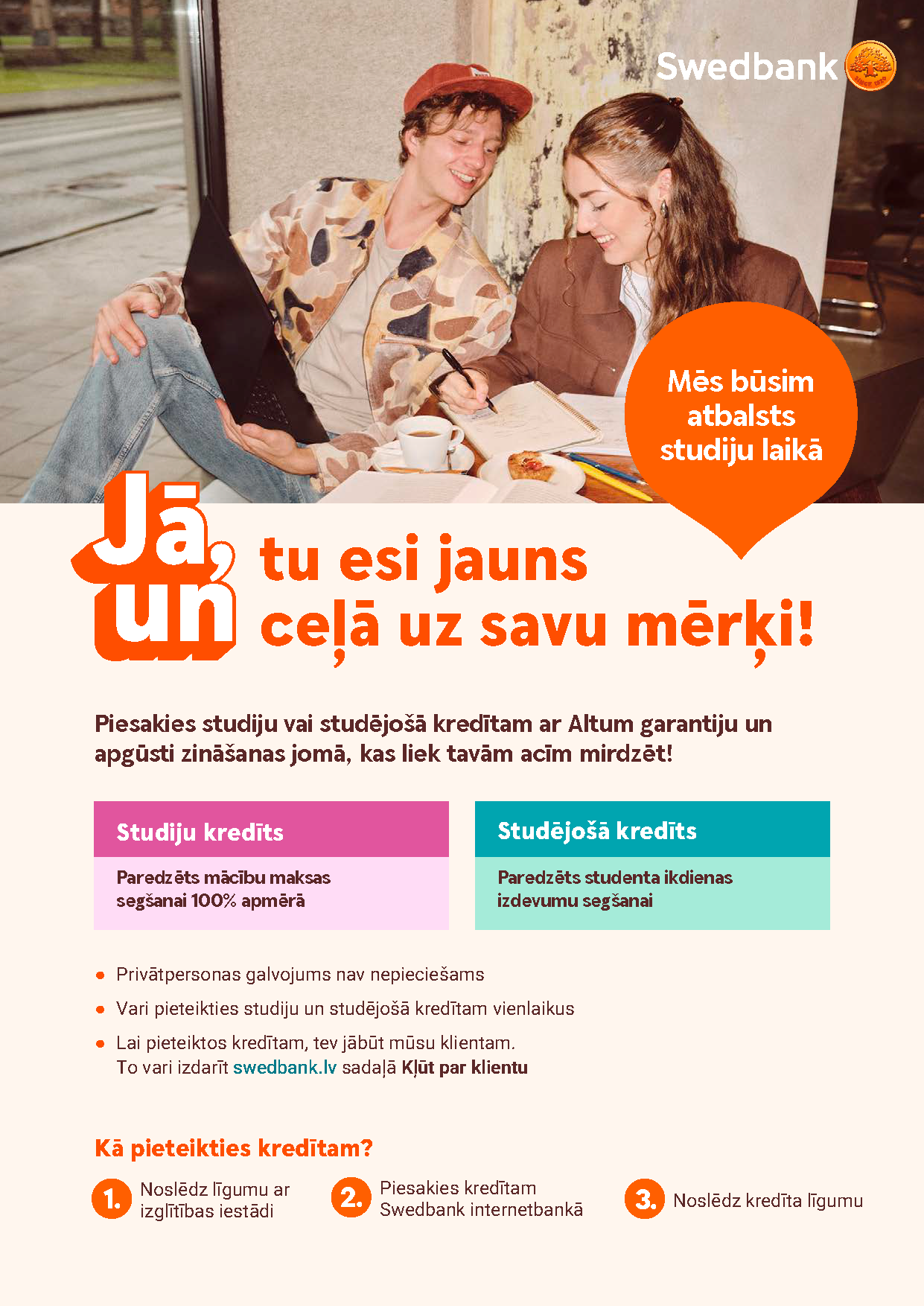 Vairāk informācija par Swedbank studējošo kredītiem šeit: Studiju kredīts