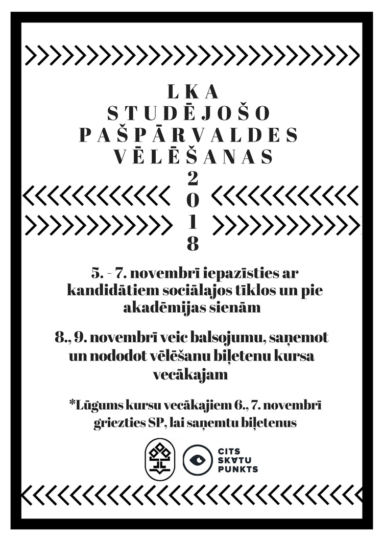 8. un 9. novembrī LKA studenti aicināti piedalīties LKA Studējošo Pašpārvaldes vēlēšanās