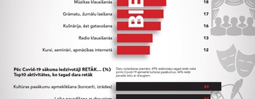 Latvijas Kultūras akadēmijas, SIA “Analītisko pētījumu un stratēģiju laboratorijas” un SIA “SKDS” pētnieki Latvijas Republikas Kultūras ministrijas uzdevumā veikuši kultūras patēriņa un līdzdalības ietekmes pētījumu, kas ataino iedzīvotāju aktivitāti dažādu kultūras pasākumu apmeklēšanā un personīgā līdzdalībā kultūrā, īstenojot 1 044 Latvijas iedzīvotāju aptauju, kā arī kultūras organizāciju (bibliotēku, arhīvu, teātru, muzeju, kultūras centru u.c.) un pasākumu rīkotāju (t.sk. komercsektora un nevalstiskā sektora pārstāvju) kvantitatīvo aptauju un 6 intervijas ar Latvijas cilvēkus ar invaliditāti pārstāvošām organizācijām.