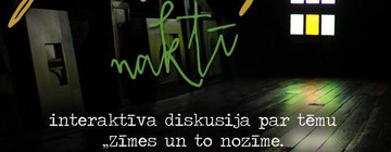 Kad? 23.03. Diskusija ilgs no plkst.19.00 līdz 22.00, kurā interesentiem būs iespēja iesaistīties sarunā ar diskusijas dalībniekiem, tādā veidā veicinot savstarpēju komunikāciju par sabiedrībā aktuāliem jautājumiem — šoreiz zīmēm un to nozīmēm.