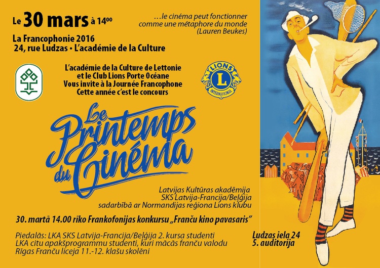 Šogad, 30. martā 14:00 Ludzas ielas 5. auditorijā kopā ar LKA Latvija-Francija/Beļģija 2. kursa studentiem, citiem LKA franču valodu zinošiem studentiem un Rīgas Franču liceja 11.-12. klašu skolēniem, nolemts pievērsties franču kino lappusēm.