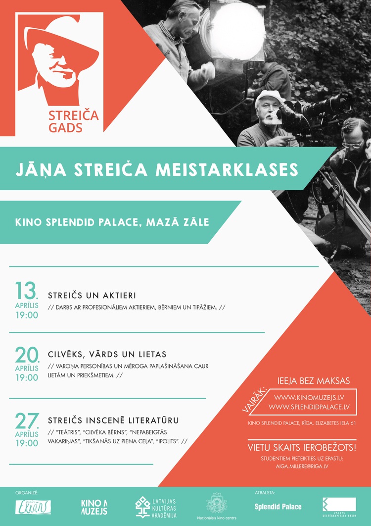 # - 13., 20. un 27. aprīlī – Jāņa Streiča meistarklases kinoteātrī Splendid Palace