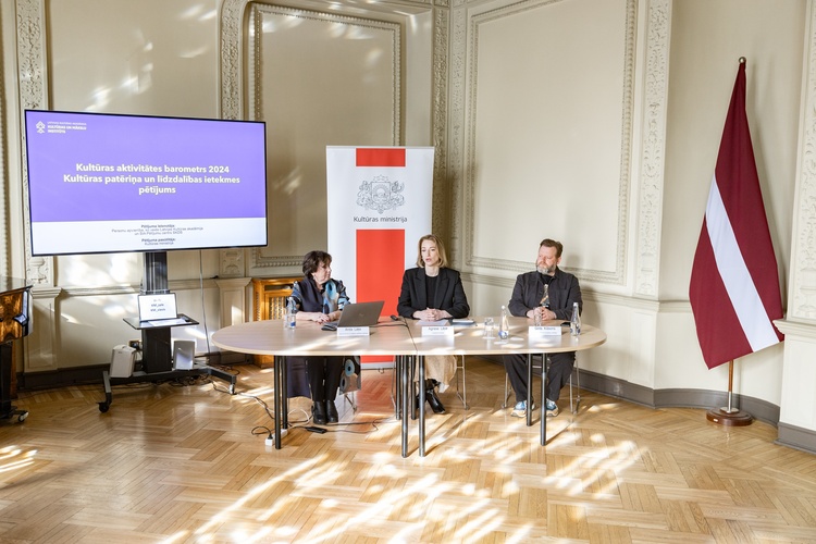 Jaunākā Kultūras patēriņa pētījuma “Kultūras aktivitātes barometrs 2024” rezultātus kultūras ministre Agnese Lāce un Latvijas Kultūras Akadēmijas (LKA) Kultūras un mākslu institūta vadītāja Anda Laķe prezentēja Kultūras ministrijā (KM) 10. aprīlī notikušajā mediju pasākumā.