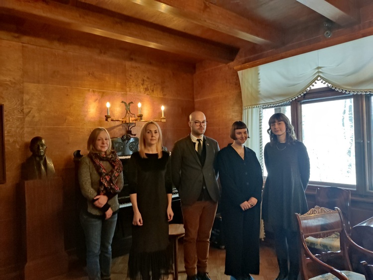 Justīne Dižpētere kopā ar citiem Kārļa Dziļlejas balvas laureātiem Jāņa Akuratera muzejā 2022. gada 10. decembrī