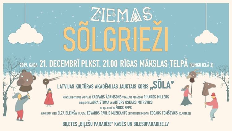 Saulgriežu vakarā – 21. decembrī plkst. 21.00 – Latvijas Kultūras akadēmijas jauktais koris „Sõla” aicina uz savas 21 gadu jubilejas un Ziemassvētku koncertu „Ziemas Sõlgrieži”. Ja iepriekšējo gadu koncerti bija vairāk par kora jubileju, tad šogad – vairāk par Ziemassvētkiem jeb Ziemas saulgriežiem. Koncertā „Ziemas Sõlgrieži”, kas notiks Rīgas mākslas telpā (Kungu ielā 3), piedalīsies Ēriks Zeps (bluķa vilcējs), Elza Bleikša (flauta), Elīss Balceris (sitaminstrumenti) un Edgars Tomševics (klavieres).