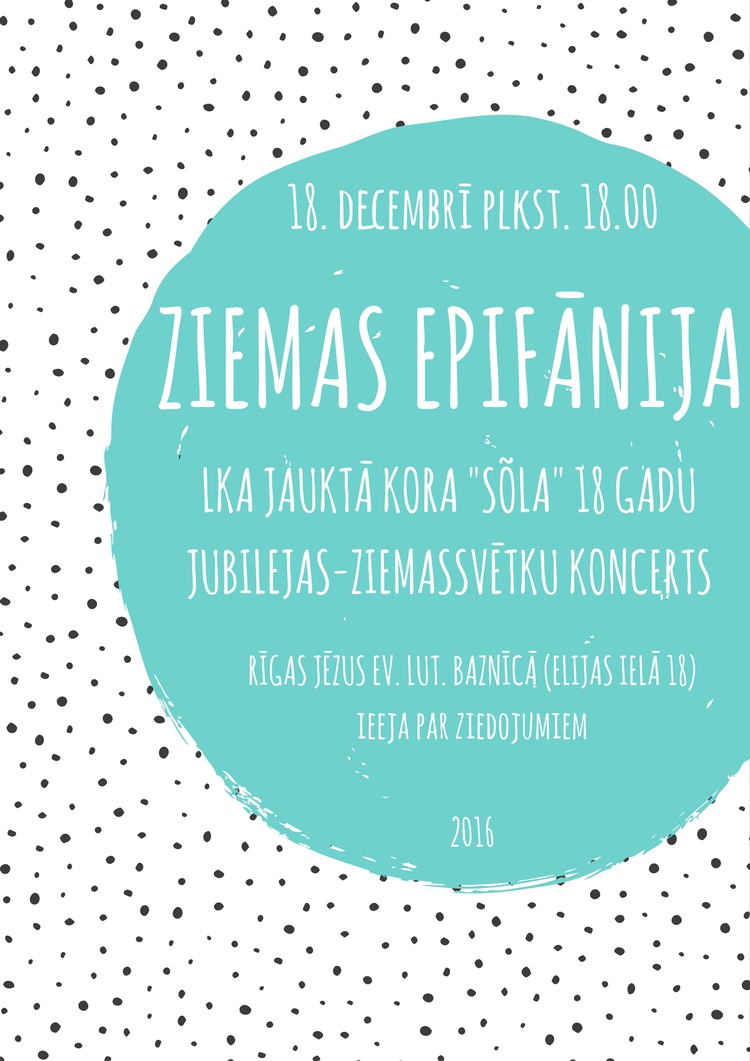 Latvijas Kultūras akadēmijas jauktais koris “Sõla” 18. decembrī plkst. 18.00 ielūdz uz 18 gadu jubilejas koncertu “Ziemas epifānija” Rīgas Jēzus baznīcā (Elijas iela 18).