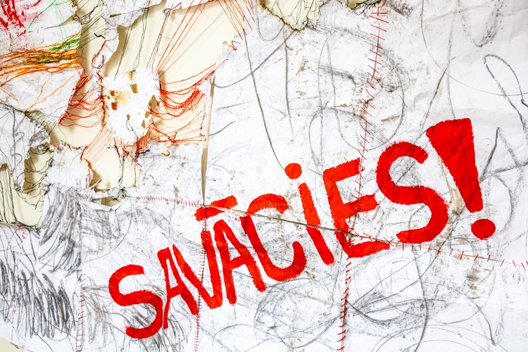 Izstādes centrālais objekts ir studentu kopdarbs jauktā tehnikā “Savācies!” (izmantotie materiāli: papīrs, diegi, līmlente, ogle, krāsainie krītiņi, akrila krāsa). Studenti par darba tapšanu: “Nosaukumu darbs ieguva tikai pašās beigās, pirms tam tas piedzīvoja vairākas pārvērtības, kas bija nejēdzīgas un ar savu būtību izteica tikai estētisko eksperimentu ietekmi. 15 A3 lapas bija savstarpēji savienotas ar skoču. Uz izveidotā papīra paklāja ar ogles un krītiņu palīdzību tika izteiktas dusmas, prieks un miers. Pēc tam darbs tika dedzināts, tātad milzīgais paklājs vairs nebija tik liels un vienots. Viena no studentēm izteica domu, ka ir jāsašuj kopā atlikušās daļas. Vairākas nedēļas, kā čakli zirneklīši, mēs šuvām visu kopā. Neviena no mums nebija permanenti visos darba tapšanos procesos, bet katra no mums iešuva vismaz vienu diegu. Kopdarbs bez autora pēkšņi atrada savu kuratoru, kurš iedeva viņam vārdu: savācies! Šis nosaukums klejoja mūsu galvās kādā no šūšanas nedēļām, kad, izjūtot garīgu izmisumu, nevarējām salikt kopā savas domas, burtiski – mēs nevarējām savākties. Mēs pašas dedzinājām to, ko vēlāk ar sarkaniem un melniem diegiem šuvām kopā”.