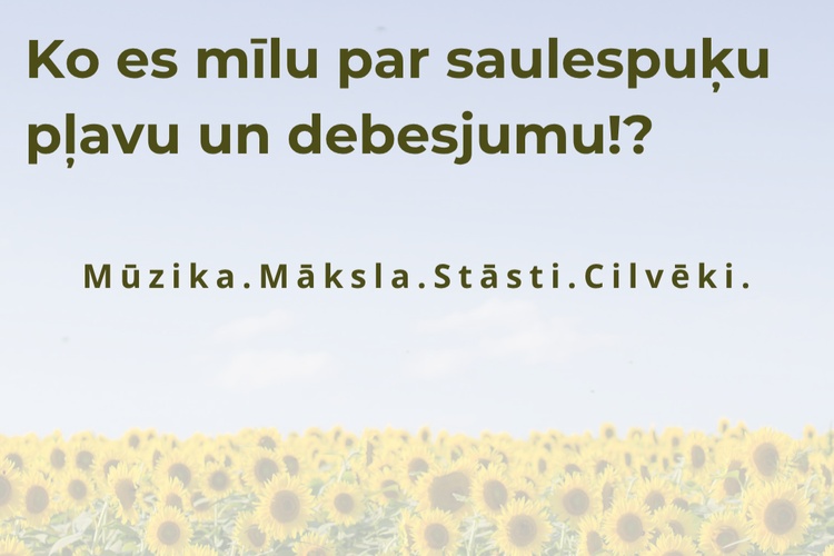 13. novembrī plkst. 18.00 Tallinas kvartāla “Angārā” notiks Latvijas Kultūras akadēmijas (LKA) studentu un jauno mākslinieku veidots labdarības vakars “Ko es mīlu par saulespuķu pļavu un debesjumu”, kura mērķis ir caur mākslu, mūziku un stāstiem atbalstīt Ukrainas iedzīvotājus un izcelt viņu kultūras spēku.