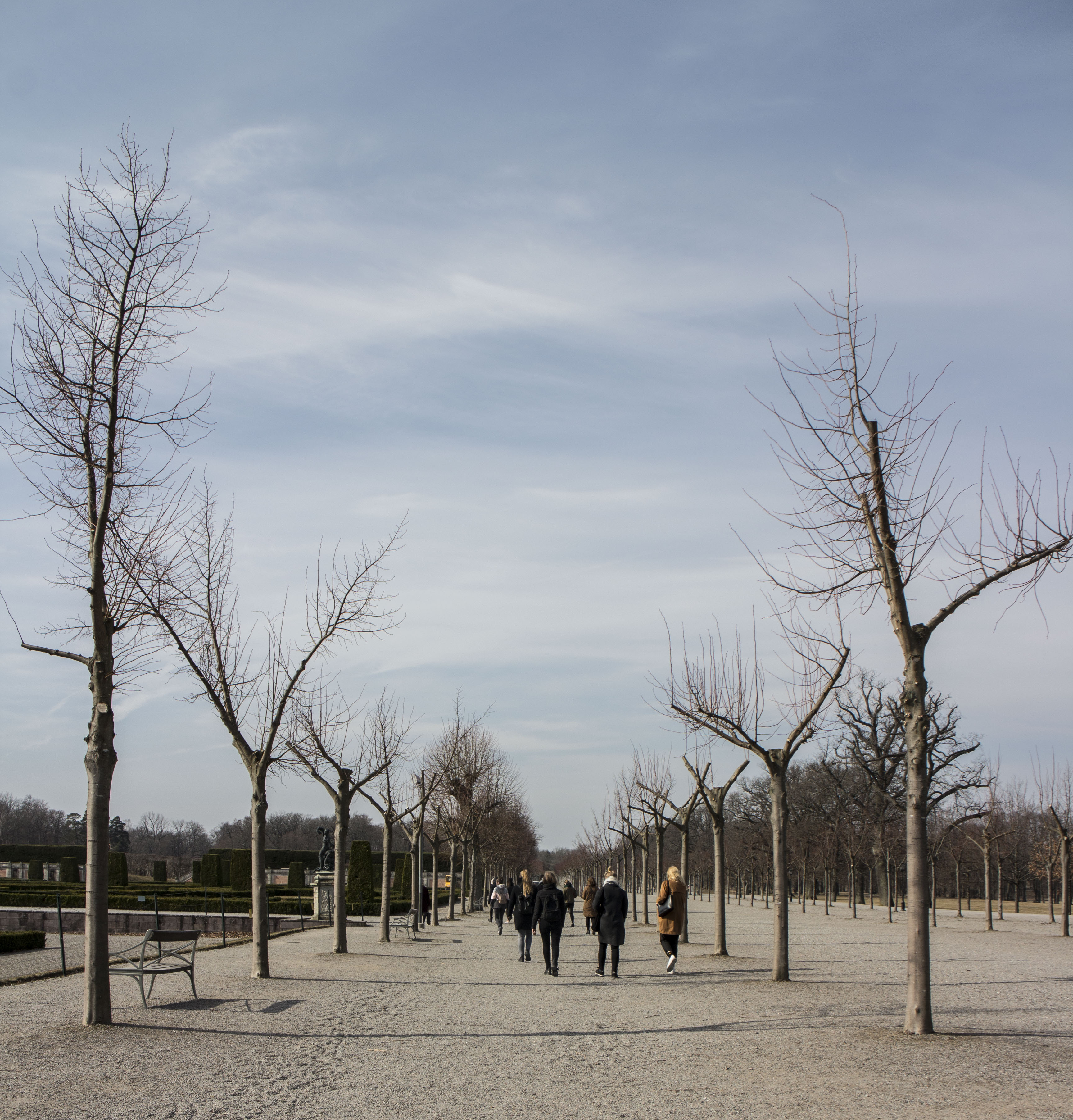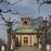 Pils ēku ieskauj liels parks franču baroka stilā, kurā atrodamas tādas pils kompleksa sastāvdaļas kā Ķīnas paviljons un teātris, kas arī bija mūsu galvenie apskates objekti šajā parkā. Ķīnas paviljona interjers apmeklētājiem diemžēl ir apskatāms tikai no maija līdz septembrim, taču mums izdevās no iekšpuses apskatīt pils teātri, kurš 1762. g. nodega, taču jau 1766. g. tika atklāts jauns teātris, kas mūsdienās ir vienīgais 18. gs. teātris, kurš joprojām darbojas un kura ēka, skatuve, tās iekārta un dekorācijas saglabātas oriģinālveidā. Teātra ēkas apmeklējums bija īpaši aizraujošs, jo gids mums izrādīja gan teātra telpas, gan arī nodemonstrēja pērkona dārdus un vēja šalkas uz iekārtas, kas saglabājusies no 18. gs.. Šajā teātrī apskatījām arī vienīgās ar roku apgleznotās tapetes Ziemeļeiropā, kuru oriģināli saglabājušies no 18.gs.