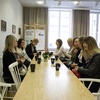 Šarlota un Ieva pastāstīja, ka veido dažādas nometnes gan studentiem, gan pasniedzējiem, kuriem zviedru valoda ir otrā valoda. Arī mūsu kursa studentes un pasniedzēja ir bijušas šādās nometnēs un bez šaubām apgalvo, ka tā ir lieliska pieredze un unikāls veids, kā attīstīt zviedru valodas prasmes. Ļoti patīkami bija tas, ka Šarlota un Ieva izrādīja lielu interesi par mūsu studijām un gaitām akadēmijā, un mēs ar lielāko prieku atbildējām uz dažādiem jautājumiem.
