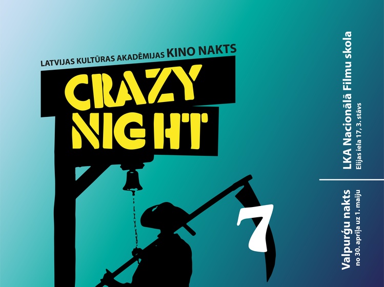 Valpurģos, naktī no 30. aprīļa uz 1. maiju, Latvijas Kultūras akadēmijas (LKA) Nacionālajā Filmu skolā (Elijas iela 17, 3. stāvs) no plkst. 21:00 līdz pat nākamās dienas rītausmai norisināsies LKA organizētā bezmaksas kino skate “Crazy Night 7”. Ieeja pasākumā no plkst. 20:00. Paralēli kino skatei apmeklētājiem būs iespēja pavadīt laiku atpūtas zonā, kur par dzērieniem rūpēsies kafejnīca “Leningrad” un visas nakts garumā skanēs mūzika.