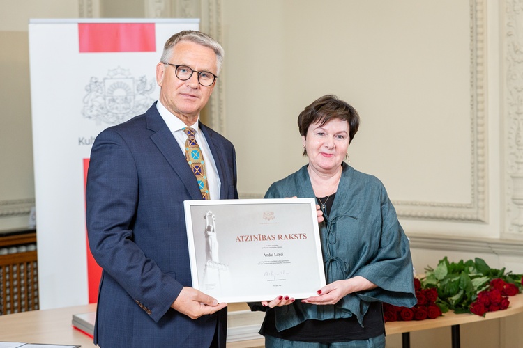 3.maijā Latvijas Republikas Kultūras ministrija godināja izcilas kultūras personības – kultūras ministrs Nauris Puntulis Ministru kabineta Atzinības rakstus un KM Atzinības rakstus par mūža ieguldījumu vai nozīmīgu devumu pasniedza 6 ilggadējiem nozares darbiniekiem. Ministru kabineta atzinības rakstu par ieguldījumu augstākajā kultūrizglītībā un Latvijas starptautiskās atpazīstamības veicināšanā saņēma Latvijas Kultūras akadēmijas prorektore zinātniskajā darbā, Kultūras un mākslu institūta vadītāja prof. Anda Lake.