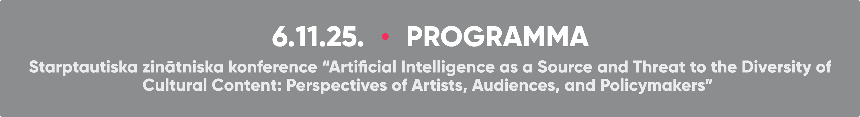 2025. gada 6. novembrī Latvijas Kultūras akadēmijas (LKA) Nacionālajā filmu skolā (Miera iela 58a) notiks starptautiska zinātniska konference “Mākslīgais intelekts kā kultūras satura daudzveidības avots un apdraudējums. Mākslinieka, auditorijas un politikas perspektīva” (Artificial Intelligence as a Source and Threat to the Diversity of Cultural Content: Perspectives of Artists, Audiences, and Policymakers), kas tiek organizēta konferenču sērijas “Kultūras Krustpunkti XIX” ietvaros sadarbībā ar UNESCO Latvijas Nacionālo komisiju. Konference veltīta mākslīgā intelekta (MI) ietekmei uz kultūras un mākslas attīstību, īpaši pievēršoties tā iespējām bagātināt kultūras izpausmju daudzveidību un vienlaikus izgaismot jaunus izaicinājumus kultūrpolitikas, radošo industriju un autortiesību jomā.