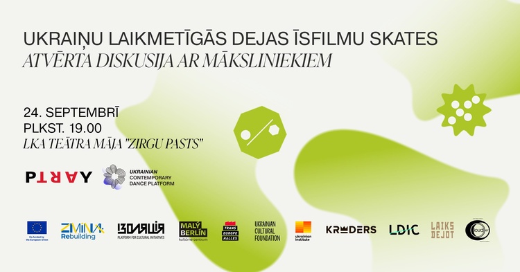 Diskusiju angļu valodā vadīs dejas kritiķe un dramaturģe Inta Balode. Sarunā piedalīsies Ukrainas dejas platformas kurators Antons Ovčiņikovs, izrādes "Pēdas", kas būs skatāma 25.09 Rīgas cirkā, horeogrāfe Tetiana Znamerovska, Horeogrāfu asociācijas vadītāja Agnese Bordjukova un Dance.lv Žurnāla laikmetīgas dejas žanra redaktore Agate Bankava. Aicinām diskusiju apmeklēt klātienē un sekot tai līdzi tiešsaistē ....