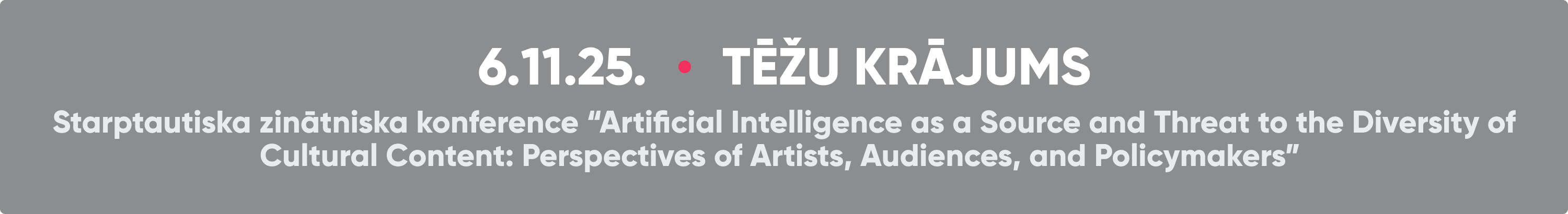 6. novembrī LKA Nacionālās filmu skolas paviljonā (Miera iela 58a) plkst. 10.00–16.30 sadarbībā ar UNESCO Latvijas Nacionālo komisiju norisināsies starptautiskā konference “Mākslīgais intelekts kā kultūras satura daudzveidības avots un apdraudējums. Mākslinieka, auditorijas un politikas perspektīva” (Artificial Intelligence as a Source and Threat to the Diversity of Cultural Content: Perspectives of Artists, Audiences, and Policymakers). Konferencē Latvijas un ārvalstu pētnieki sniegs daudzpusīgu ieskatu par mākslīgā intelekta ietekmi uz kultūras procesiem un māksliniecisko jaunradi – no tehnoloģiskajām un ētiskajām dimensijām līdz politikas plānošanai un kultūras mantojuma pieejamībai digitālajā vidē. Konferencē tiks aplūkotas arī radošās industrijas iespējas un izaicinājumi, ko rada ģeneratīvā mākslīgā intelekta izmantošana, savukārt konferences noslēgumā pētnieki pievērsīsies digitālās atmiņas un kultūras mantojuma resursu pieejamībai. Darba valoda – angļu.