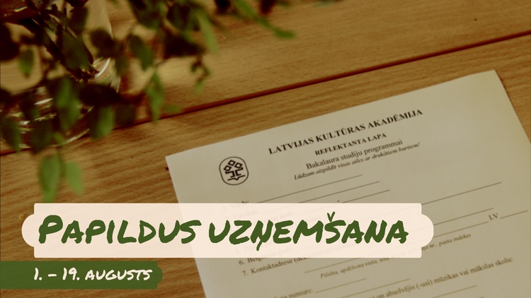 No 1. līdz 19. augustam papildus uzņemšana maksas studijām Latvijas Kultūras akadēmijā