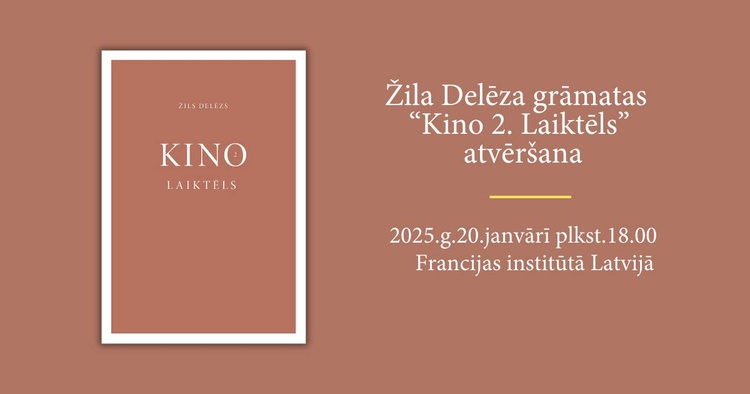 Francijas institūts Latvijā un izdevniecība “Aminori” aicina uz franču filozofa Žila Delēza grāmatas “Kino 2. Laiktēls” atvēršanas pasākumu pirmdien, 2025. gada 20. janvārī, plkst. 18.00 Francijas institūtā, Raiņa bulvārī 9.
