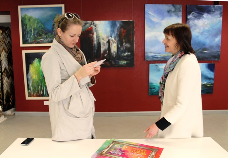 Attēlā LKA 2.kursa studente Katrīna Upatniece ar mākslas galerijas “Pegazs” vadītāju Līgu Sāni.
