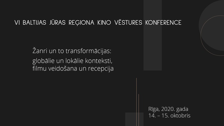 2020. gadā Rīgā no 14. līdz 15. oktobrim norisināsies VI Baltijas jūras reģiona kino vēstures konference (Baltic Sea Region Film History Conference) “Žanri un to transformācijas: globālie un lokālie konteksti, filmu veidošana un recepcija”. Konference ir ikgadējs kino vēsturnieku un teorētiķu sadarbības projekts Baltijas jūras valstu vēstures periodu un aktuālu teorētisku problēmu izpētē. Konference pirmo reizi notika 2014. gadā Tallinā, kas bija arī nākamo četru Baltijas jūras reģiona kino vēstures konferenču mājvieta. Sākot ar 2019. gadu, tika nolemts konferenci organizēt pārmaiņus dažādās vietās. 2020. gadā konference notiks Rīgā. VI konferenci organizē Latvijas Kultūras akadēmija, sadarbojoties ar Lietuvas Teātra un mūzikas akadēmiju un Igaunijas Nacionālo arhīvu Kino arhīvu.