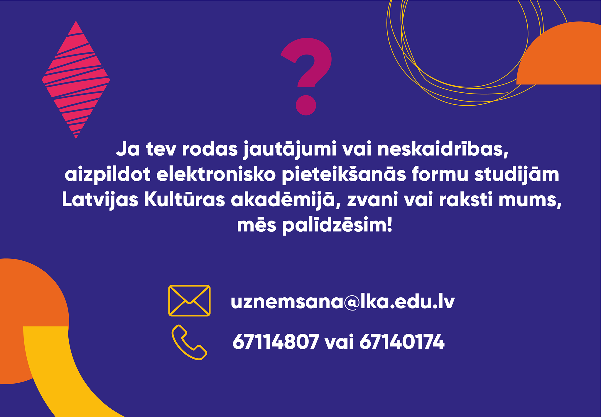 Vairāk par studijām un uzņemšanu LKA: https://lka.edu.lv/lv/gribu-studet-akademija/vasaras-uznemsana-lka/