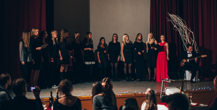 Par vakara muzikālo gaisotni rūpējās 4. Kursa studentes Karlīna Engere un Agnese Žalveronoka, izpildot dziesmas franču valodā Kārļa Pūla ģitāras pavadījumā, Mārtiņš Dūka priecēja ar pagājušajā Rudens Salonā iepazītā beļģu mūziķa un ģitārista Džango Reinhārda (Django Reinhardt) repertuāru, 2. un 4. kursa studentes izpildīja savu kopīgi iestudēto franču dziedātājas Zaz dziesmu “Je Veux” . Skatītāji varēja vērtēt arī 2. kursa meiteņu iemācīto beļģu tautas deju.