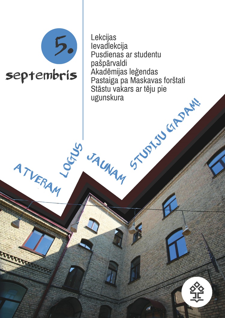 Lai Latvijas Kultūras akadēmijas pirmo kursu studenti vieglāk iejustos studenta ikdienā un iegūtu priekšstatu par Akadēmijas vidi un studiju procesa organizāciju, 5. septembrī notiks pasākums “Atveram logus jaunajam studiju gadam!”.