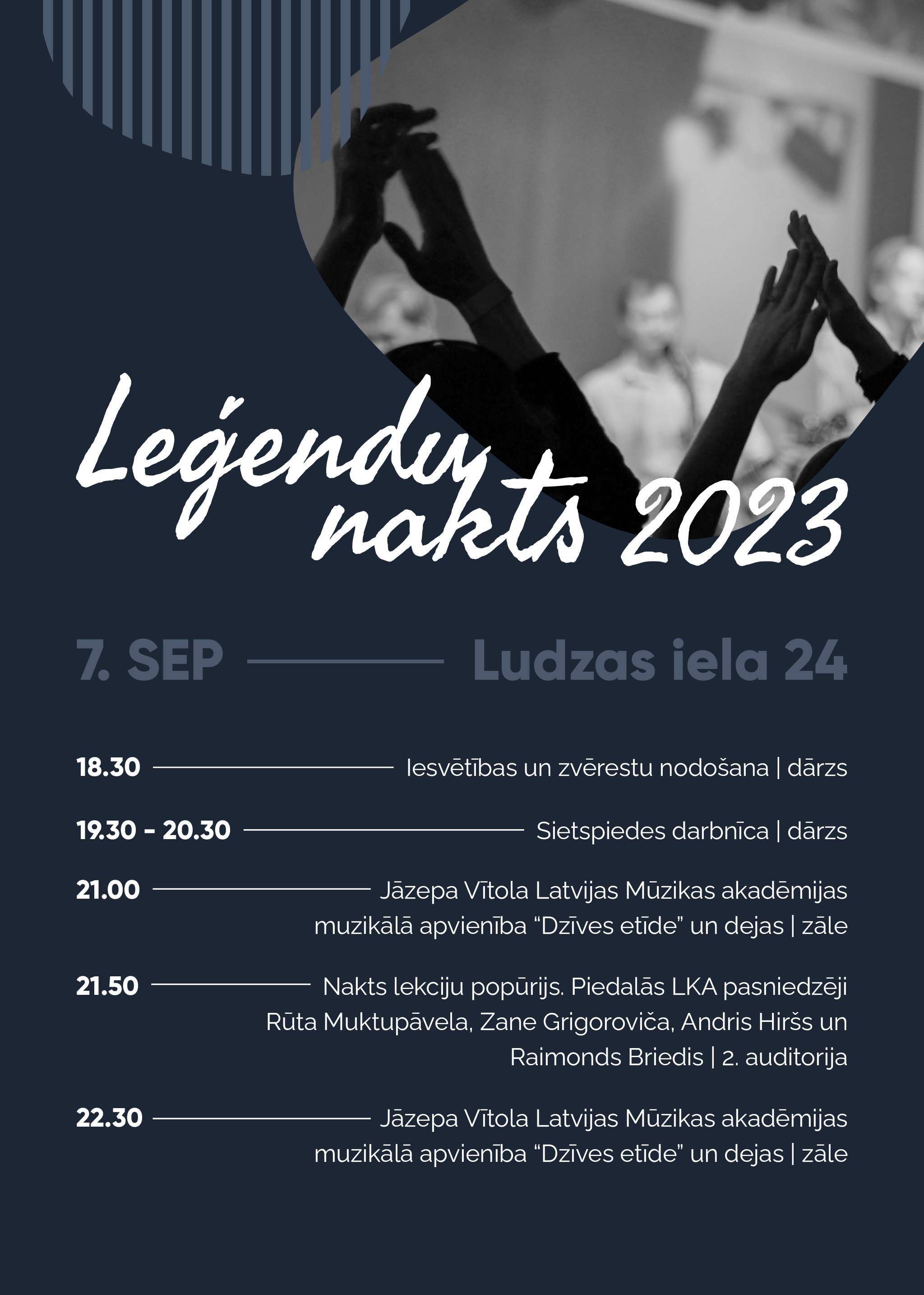 Vairāk par Leģendu nedēļu var lasīt: https://lka.edu.lv/lv/aktuali/jaunumi/jauno-studiju-gadu-latvijas-kulturas-akademija-atklas-legendu-nedela/