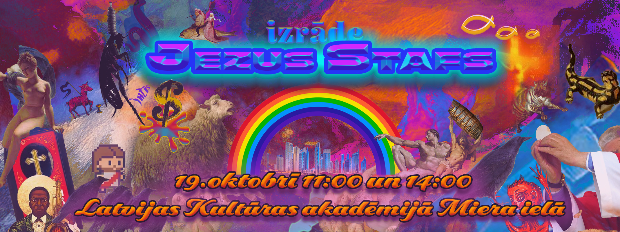 “JEZUS STAFS” ir dinamiska, kolāžai līdzīga izrāde, kas ieved skatītājus alternatīvo kristiešu draudžu dievkalpojuma pasaulē. Izrāde balstās radošās komandas gūtajos novērojumos, apmeklējot dažādas draudzes. Izrāde izceļ draudzi kā vidutāju, vietu, kurā cilvēka ilgas pēc kā augstāka satiekas ar dievišķo klātbūtni. Bet tomēr, kas mīt aiz draudzes līdera – mācītāja – priekšnesumiem, kuros viņš uzņemas starpnieka lomu? Kur beidzas rituāls un sākas zaimošana?