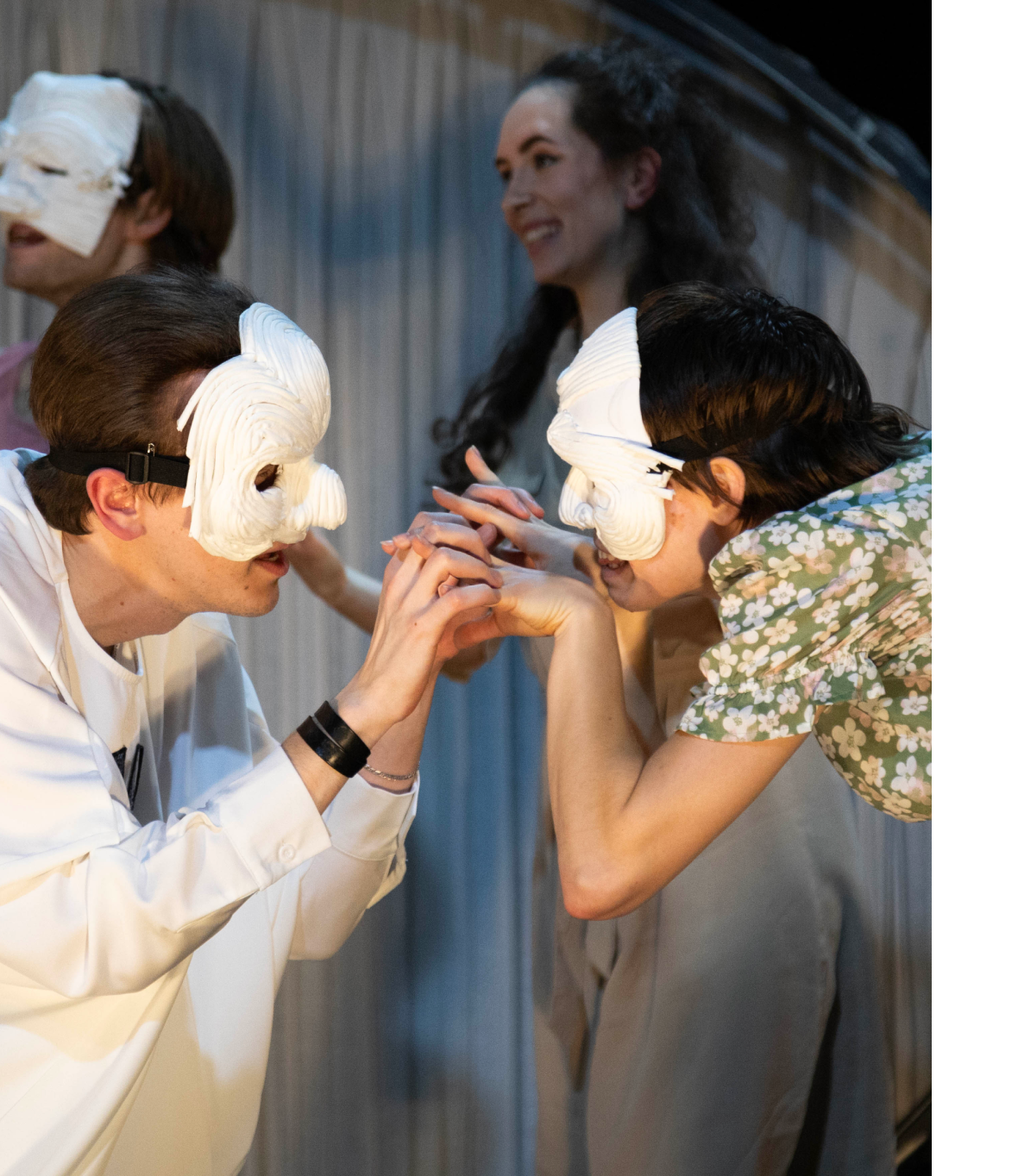 ![]() | LAIKMETĪGA MASKU KOMĒDIJA: SAPŅOTĀJIRežisors: Kārlis Krūmiņš Izrādes garums: 1 stunda Šīs izrādes trumpji ir dzirkstošs humors, groteski tēli un precīzi notverta dzīves absurdā daba. Izrādes centrā – aktierspēle ar izteiktu fiziskumu, augstu temporitmu un piesātinātu emocionalitāti. Izrāde “Sapņotāji” ironiski reflektē par realitāti, nebaidoties aizskart dažādas sabiedrībā aktuālas tēmas un savijot tās aizraujošā teātra piedzīvojumā. |