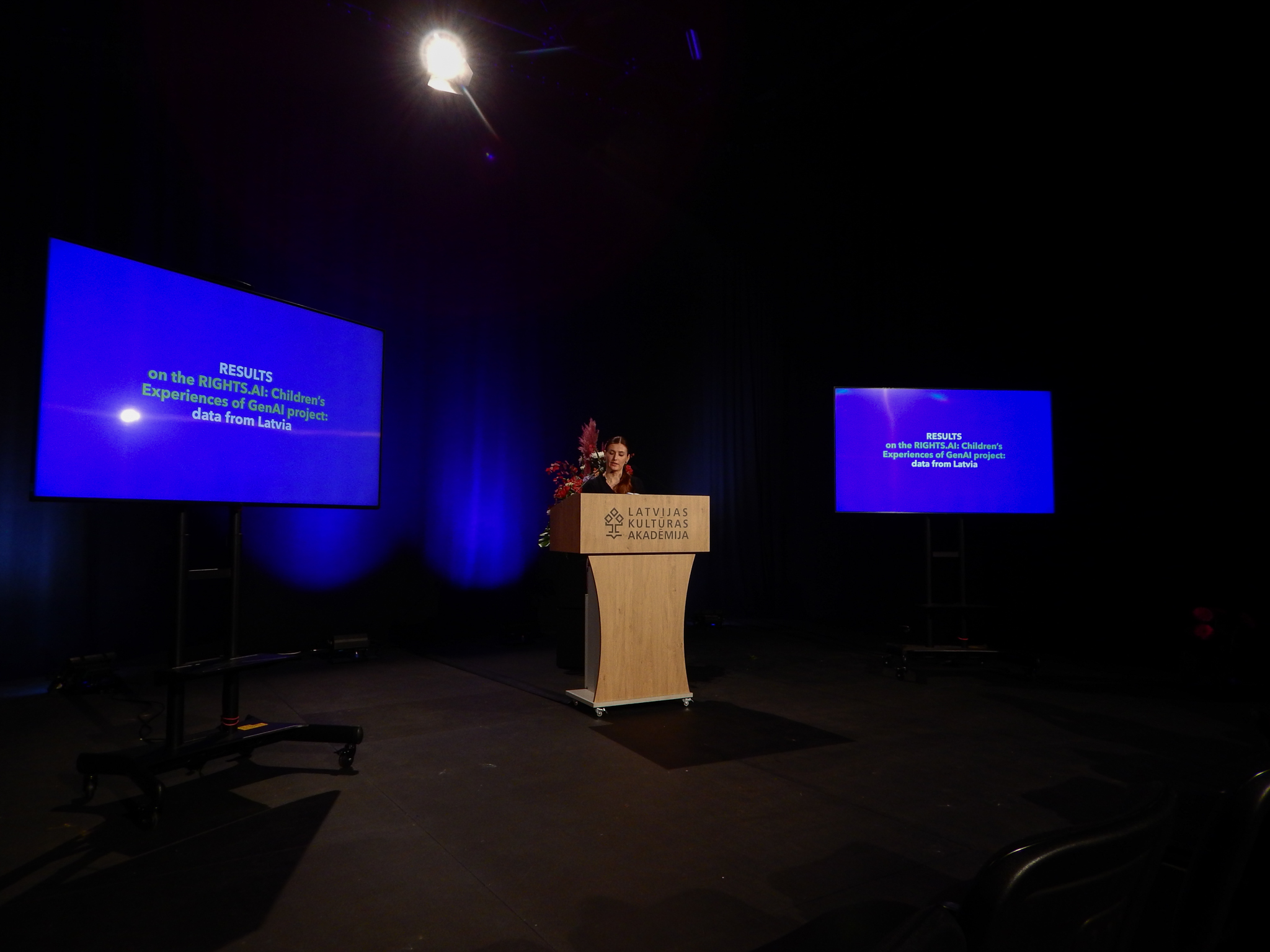 Pēcdoktorante prezentēja pētījumu “The Creativity Experience of the Digital Generation: Art, Culture and Generative Artificial Intelligence”, kurā analizēja starptautiskā tīkla EU Kids online ietvaros iegūtos datus par to, kā jaunieši lieto AI un kas tajā visā notiek ar radošumu.