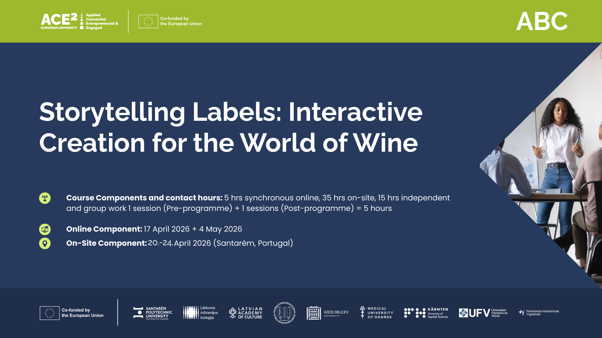 Santaremas Politehniskais institūts sadarbībā ar Francisko de Vitorijas Universitāti (Universidad Francisco de Vitoria), Karintijas Lietišķo zinātņu universitāti (Carinthia University of Applied Sciences) un Latvijas Kultūras akadēmiju.