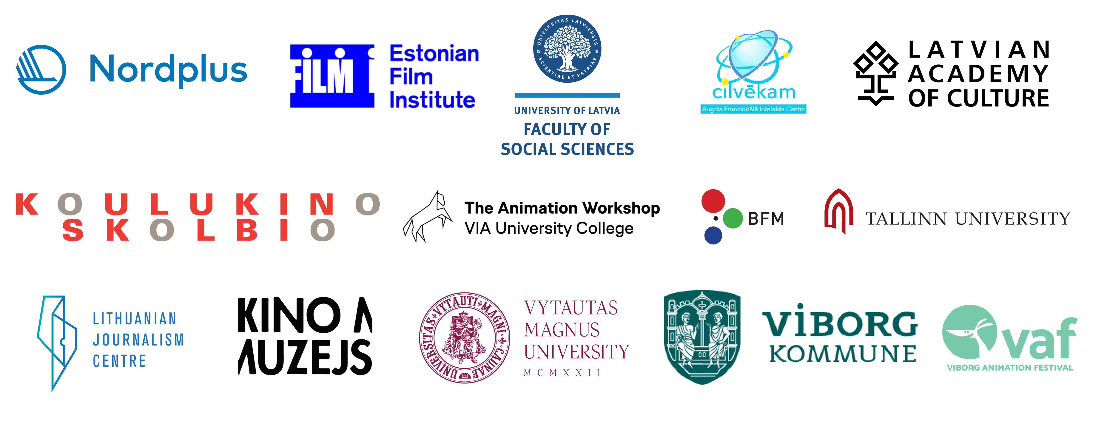 Projekta partnerorganizācijas: Latvijas Universitātes Sociālo zinātņu fakultātes UNESCO Medijpratības un informācijpratības katedra (LV), LKA Rīgas kino muzejs (LV), Tallinas Universitātes Baltijas Filmu un mediju skola (EE), Igaunijas Kino institūts (EE), Viborgas animācijas skola (DE), Skolu kino asociācija (Koulukino) (FI), Lietuvas žurnālistikas centrs (LT) un Kauņas Vitauta Dižā Universitāte (LT).